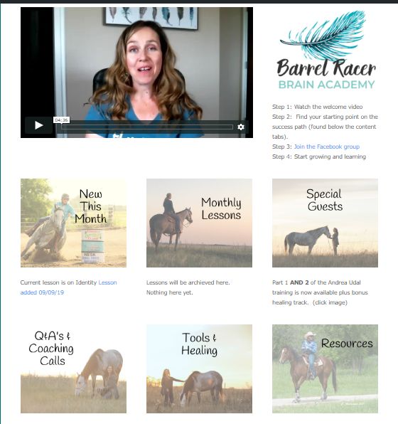Join the Barrel Racer Brain Academy and take your barrel racing to an entirely new level. Go from nerves that get in the way, a mind governed by monkeys and runs that are no fun, to manifesting the solid, confident and winning runs you’ve been dreaming of. Go from someone that is at the mercy of the ego and circumstance, to someone that is a leads from the heart and supports others through their journey.