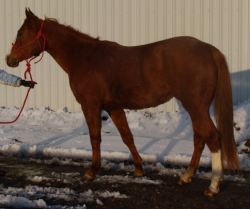 * 4 year old gray filly,15 hh, has been raced and placed, out of a half sister to Jet, riding well, great stop, soft mouth. Smart horse. By Royal Evening Snow (Stud fee of $1500 US). She has a Speed Index of 95